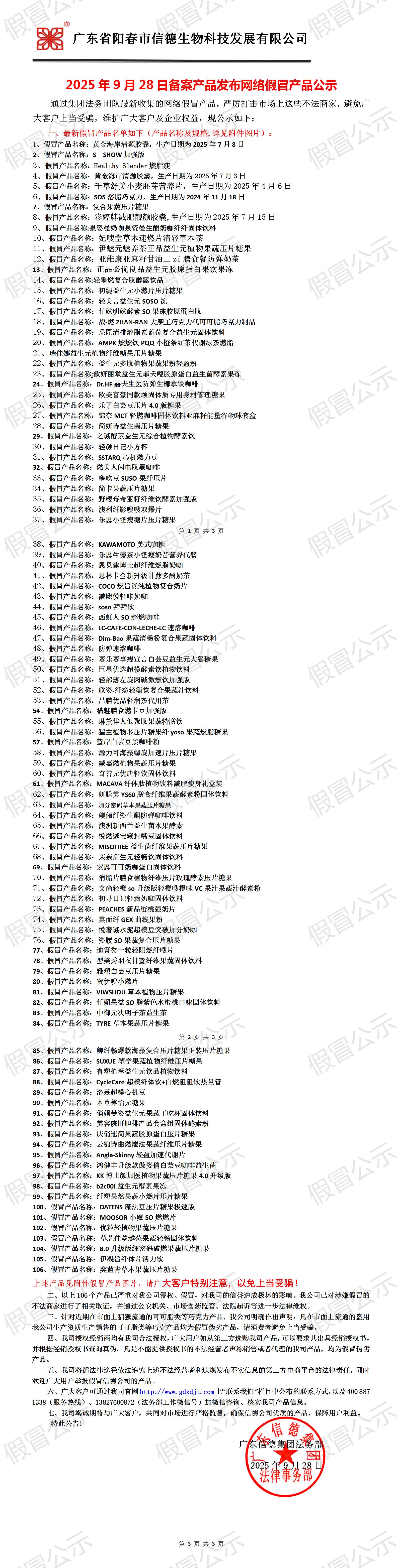 2025年9月28日备案产品发布网络假冒产品公示!!!