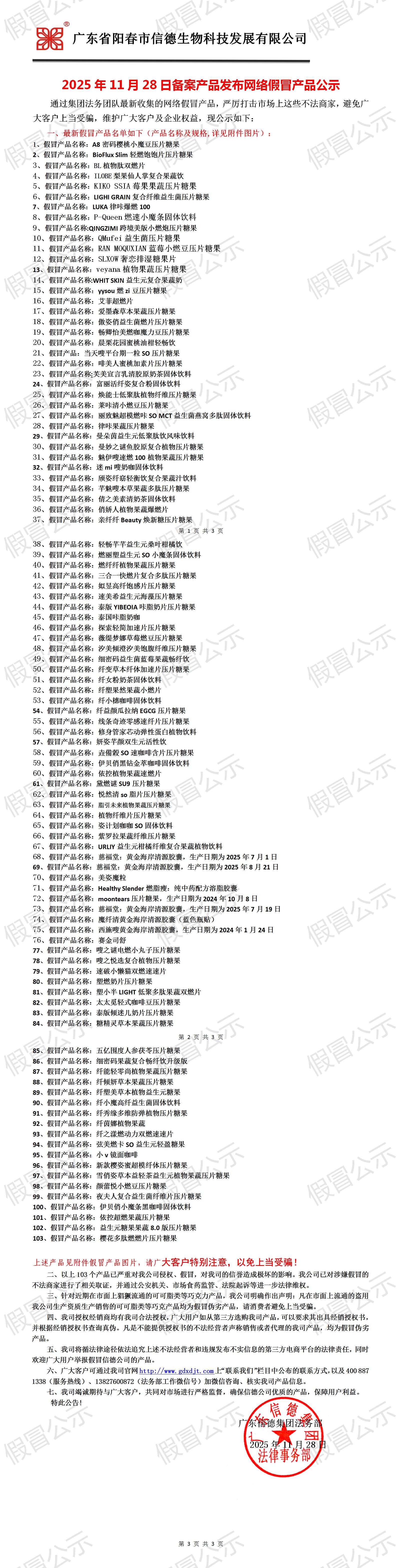 2025年11月28日备案产品发布网络假冒产品公示!!!