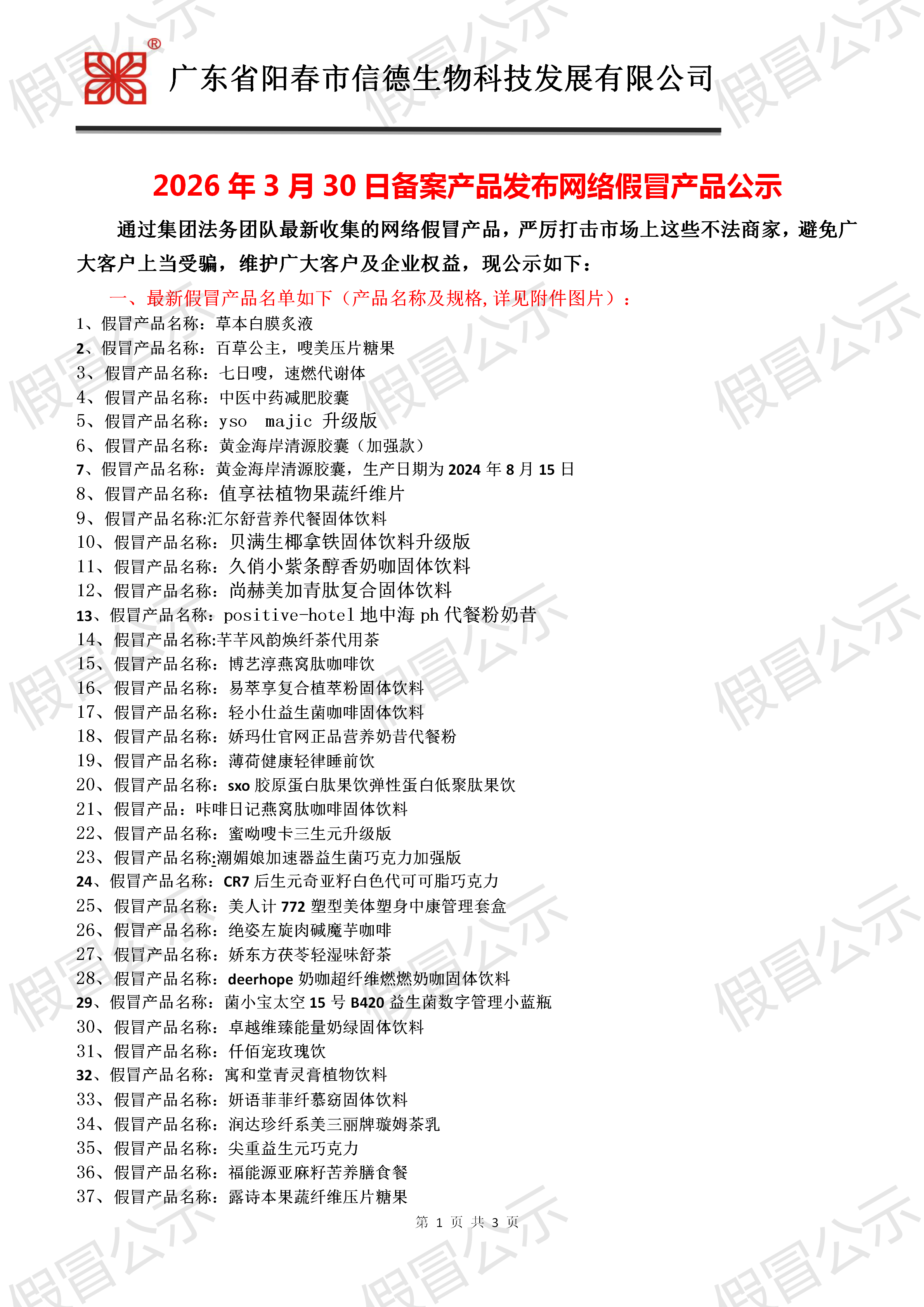 2026年3月30日备案产品发布网络假冒产品公示!!!